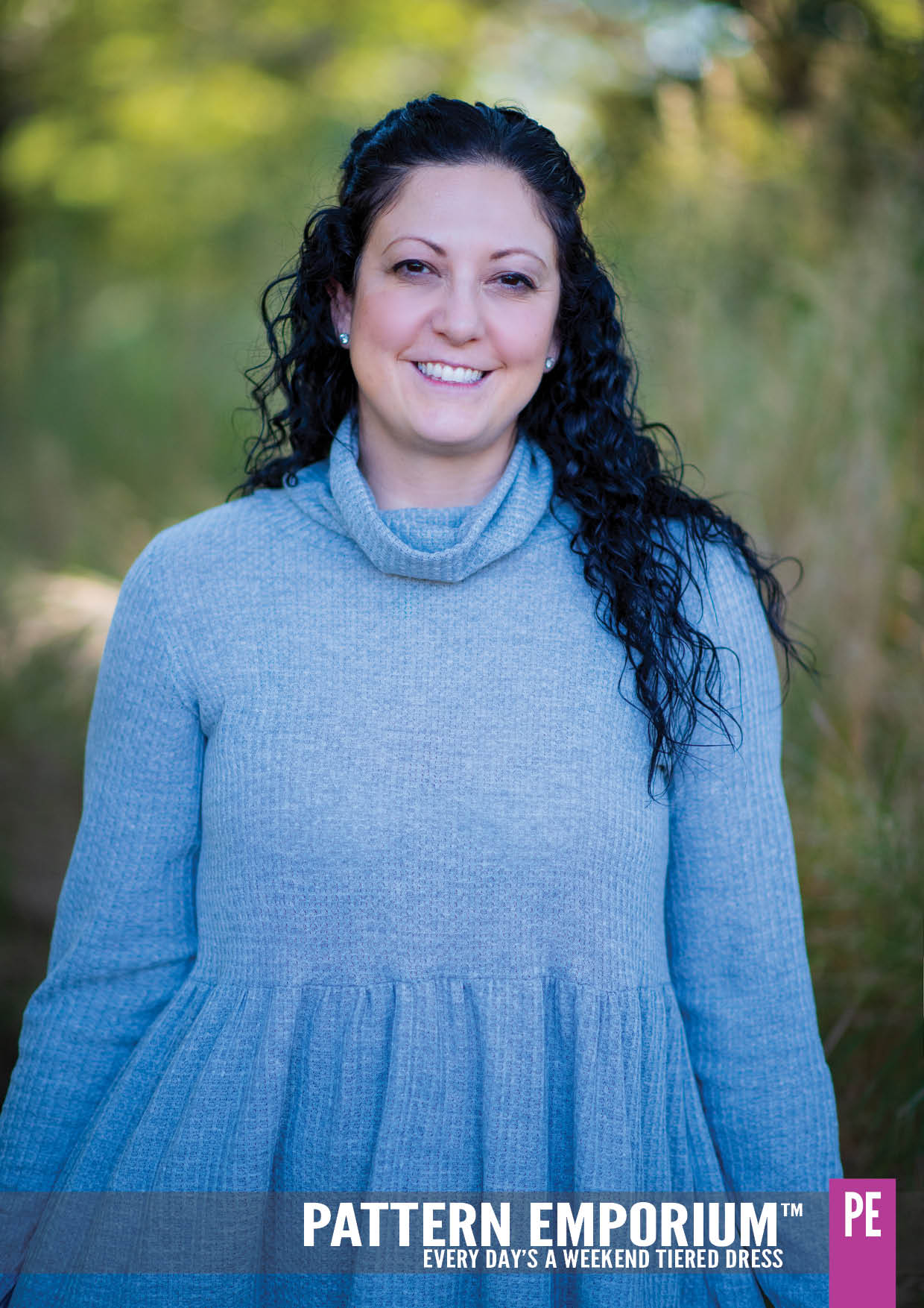 Designed for stretch knit fabrics, the Every Day’s A Weekend Tiered Dress sewing pattern features a relaxed, easy fitting bodice, tiered skirt and a choice of summer & winter sleeves & necklines including a warm roll neck.