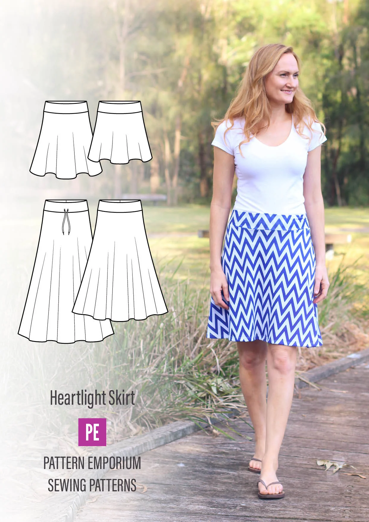 The Heartlight Skirt sewing pattern features a flared silhouette with a full, flowy hemline. Designed with a comfy wide waistband & multiple lengths, it’s perfect for everyday wear or dressing up. Effortlessly stylish, this skirt is all about modern movement and versatility.Â